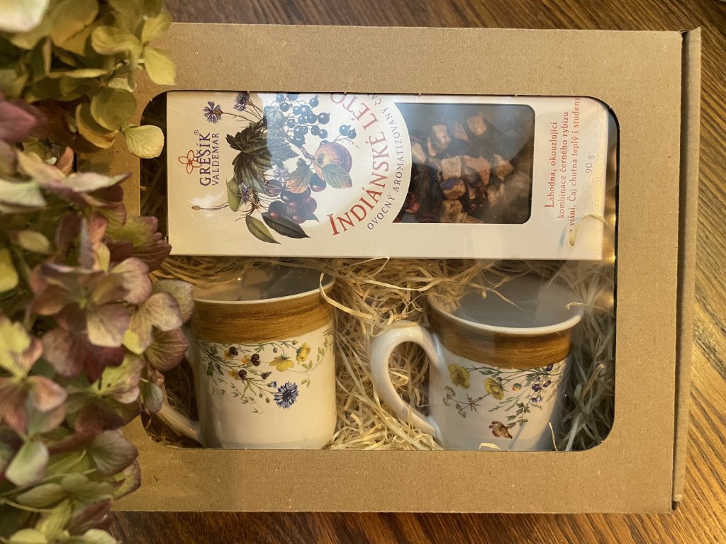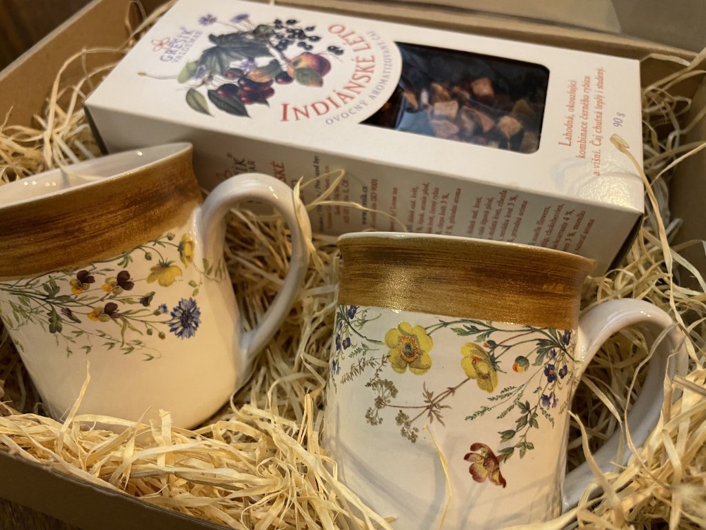 Výtečný ovocný čaj potěší svou vůní a chutí a keramické hrnky příjemně zahřejí ruce i srdce.